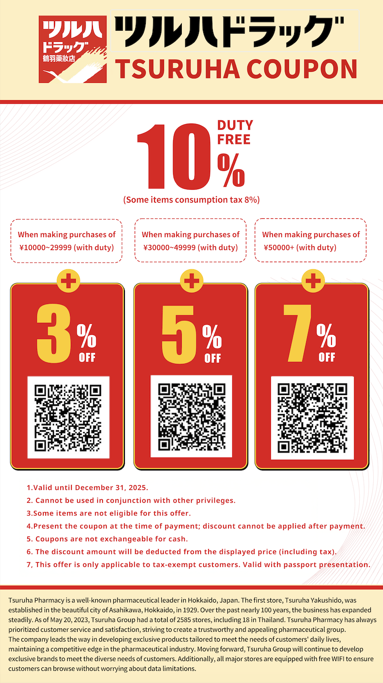 คูปองส่วนลดสุดคุ้มสูงสุด 17% ที่ ซูรูฮะ (Tsuruha) – ร้านขายยาญี่ปุ่นที่คนไทยห้ามพลาด!