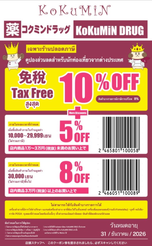 แจกคูปองส่วนลด Tax Free และส่วนลดสินค้าสูงสุด 8% ที่ KoKuMiN DRUG – ช้อปสกินแคร์ วิตามิน และของใช้ญี่ปุ่นในราคาสุดคุ้ม
