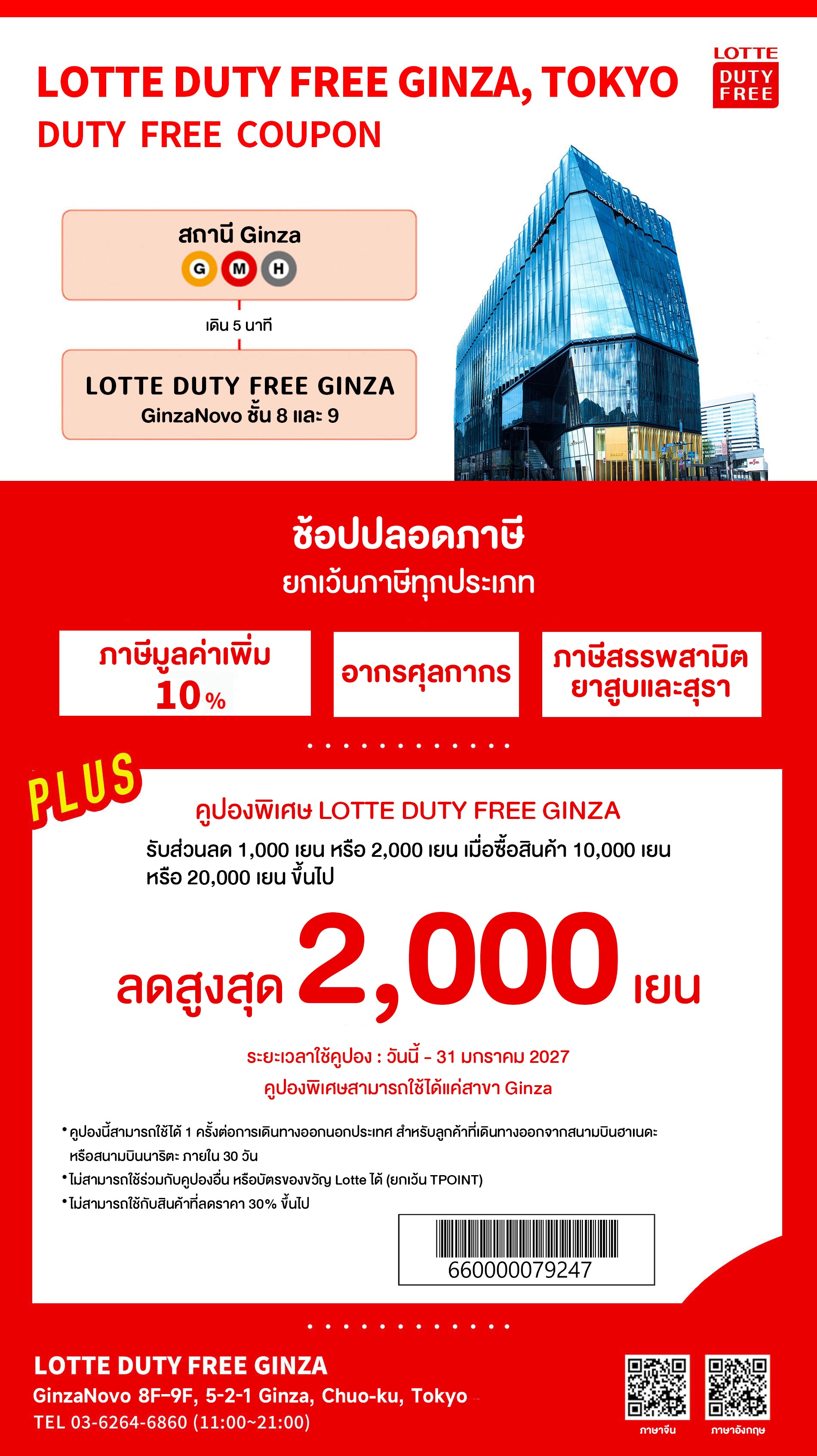 คูปองส่วนลดสูงสุด 2,000 เยน ที่ LOTTE DUTY FREE GINZA – ช้อปไอเทมแบรนด์ดังปลอดภาษีใจกลางโตเกียว