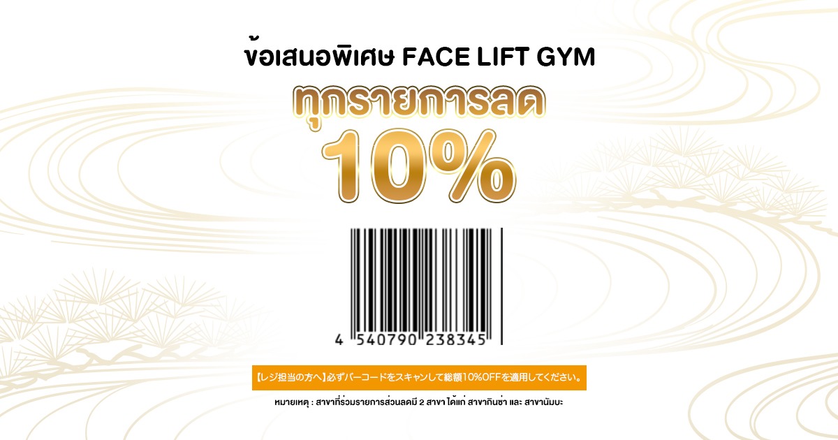 คูปองส่วนลดสูงสุด 10% ที่ FACE LIFT GYM – ร้านนวดหน้ายกกระชับสุดพรีเมียมในญี่ปุ่น