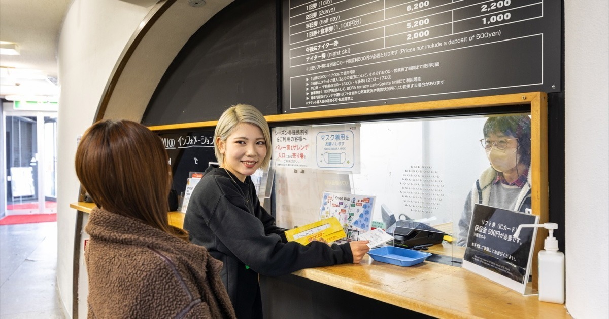 เมื่อถึงสกีรีสอร์ตแล้ว ให้ไปยัง “ศูนย์บริการ (Center House)” ซึ่งมีจุดจำหน่ายตั๋วลิฟต์ เคาน์เตอร์เช่าอุปกรณ์ ร้านอาหาร ฯลฯ และดำเนินการตามขั้นตอนด้านล่างให้เรียบร้อย