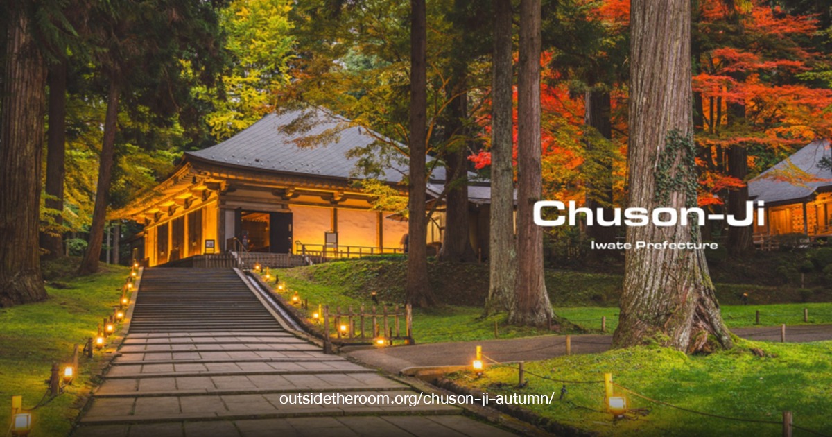 วัดมรดกโลกอายุกว่า 1,000 ปี มีเจดีย์ทองคำ Konjikido ที่สวยงามมาก ในฤดูใบไม้เปลี่ยนสี วัดนี้จะเปลี่ยนเป็นสีทองแดงทั่วทั้งพื้นที่