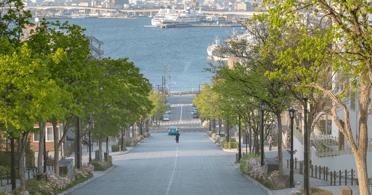 หนึ่งในจุดชมวิวที่ต้องมาถ่ายภาพ ด้วยภาพถนนลาดชันเส้นตรงที่ทอดยาวลงสู่อ่าวฮาโกดาเตะอย่างพอดี เป็นฉากคลาสสิกที่มักปรากฏในภาพยนตร์ โฆษณา และโปสเตอร์ท่องเที่ยวของญี่ปุ่น โดยเฉพาะในฤดูใบไม้ผลิที่บริเวณรอบ ๆ จะเต็มไปด้วยซากุระสีชมพูขาว ช่วยเพิ่มความละมุนให้กับภาพถ่าย