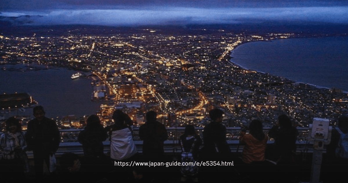 จุดชมวิวภูเขาฮาโกดาเตะ คือสถานที่ที่ไม่ควรพลาดเมื่อมาฮาโกดาเตะ เพราะวิวกลางคืนจากยอดเขาที่นี่ถูกยกให้เป็นหนึ่งในสามวิวกลางคืนที่สวยที่สุดของญี่ปุ่น จะได้ชมภาพผังเมืองฮาโกดาเตะในมุมสูงที่มีลักษณะคล้ายนาฬิกาทราย ให้บรรยากาศโรแมนติกมาก ๆ